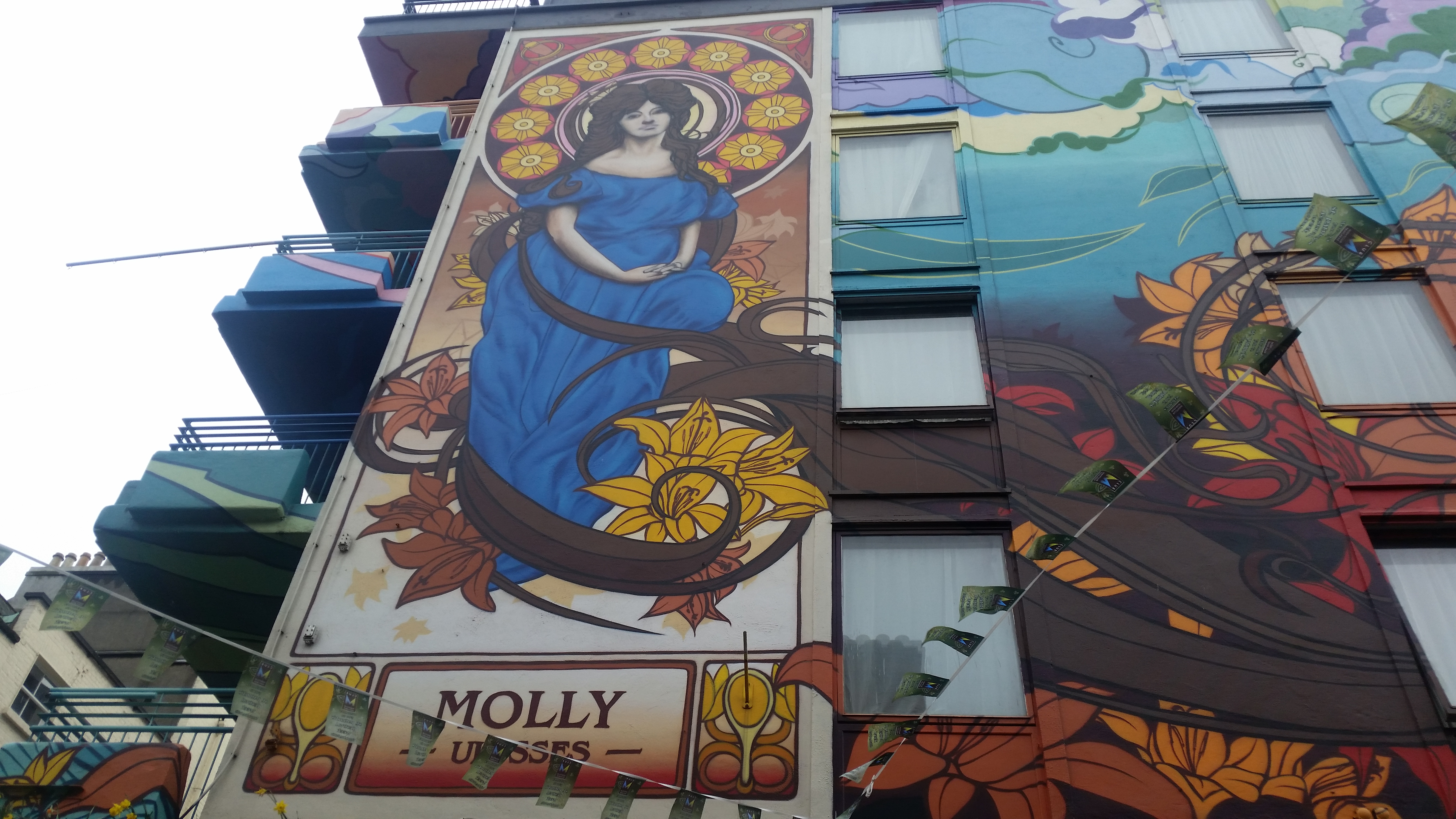 Zostając w Tample Bar, warto przespacerowac, sie pod Blooms hotel, dekoracja jego elewacji to prawdziwy raj! Wielkie murale, które nawiązują do twórczości Alfonsa Muchy, przedstawiając postacie z powieści, bez, której ciężko sobie wyobrazić to miasto -Ullisessa Jamesa Joysa. Dla miłośników powieści organizowanych jest wiele tras spacerowych, można też odwiedzić dom pisarza a także muzeum pisarzy w Dublinie.