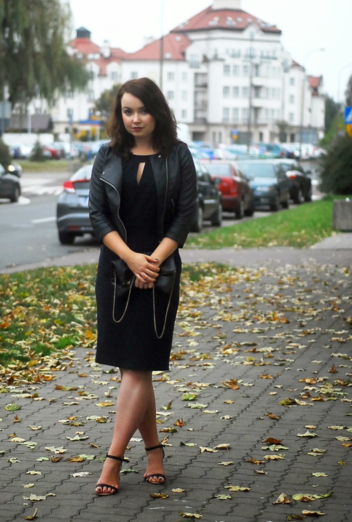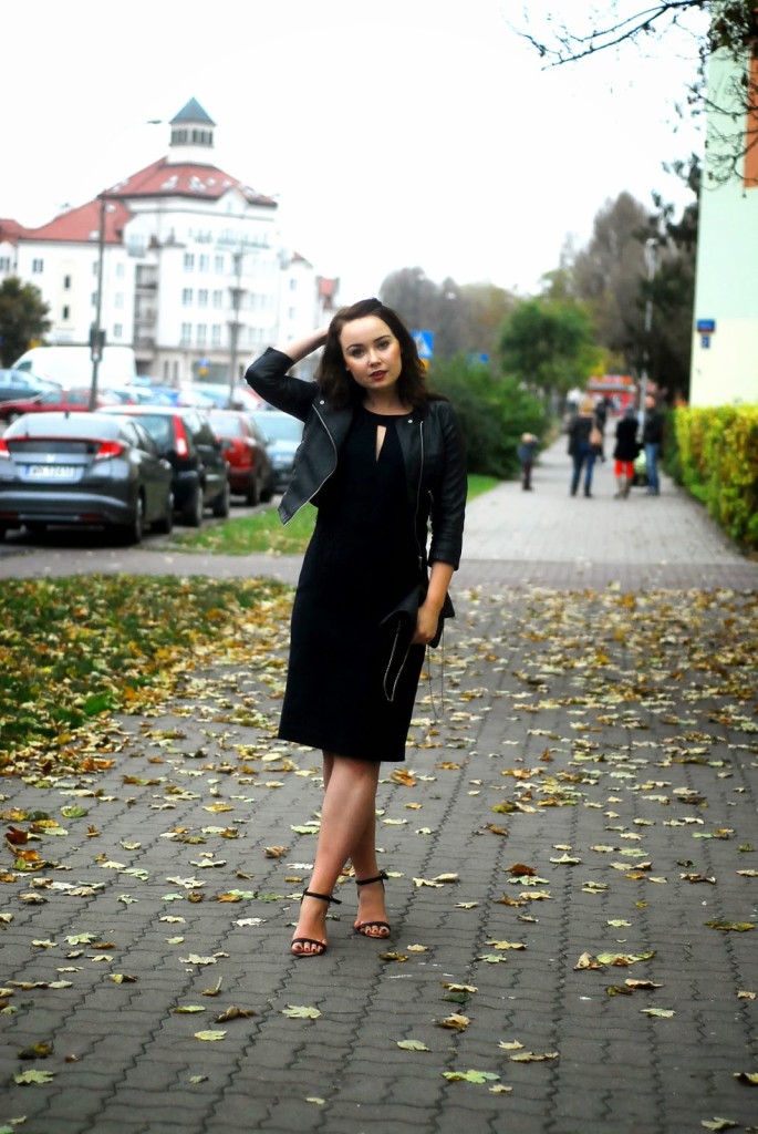Bershka: ramoneska, Sukienka: Lumpex, Stradivarius: Szpilki, H&M: torebka